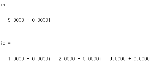n = [9]; d = [1 2 9]; w = logspace(-1,1); [h,w] = freqs(n,d,w) [in,id] = invfreqs(h, w, 'complex' , 0, 2)
