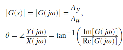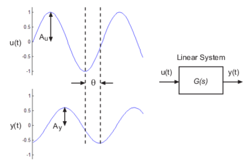Figure 4. Frequency Response of System 따라서 Sinusoidal input의 출력을 통해 Transfer function을 Equation 15.처럼 유추하는 것이다. U(s)는 u(t), Y(s)는 y(t)의 Laplace transform이다.