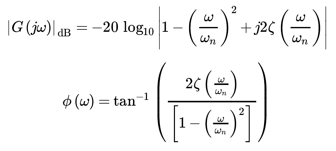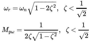 Equation 18. 위의 수식을 Plot을 그린 것이 Bode plot이다. Bode plot은 특정 Frequency에서 급격하게 Magnitude plot에서 Peak를 찍게 되고, Peak가 되는 Magnitude를 Peak magnitude, 이때의 Frequency를 Resonant frequency라고 하며 Equation 19.과 같이 정의한다.